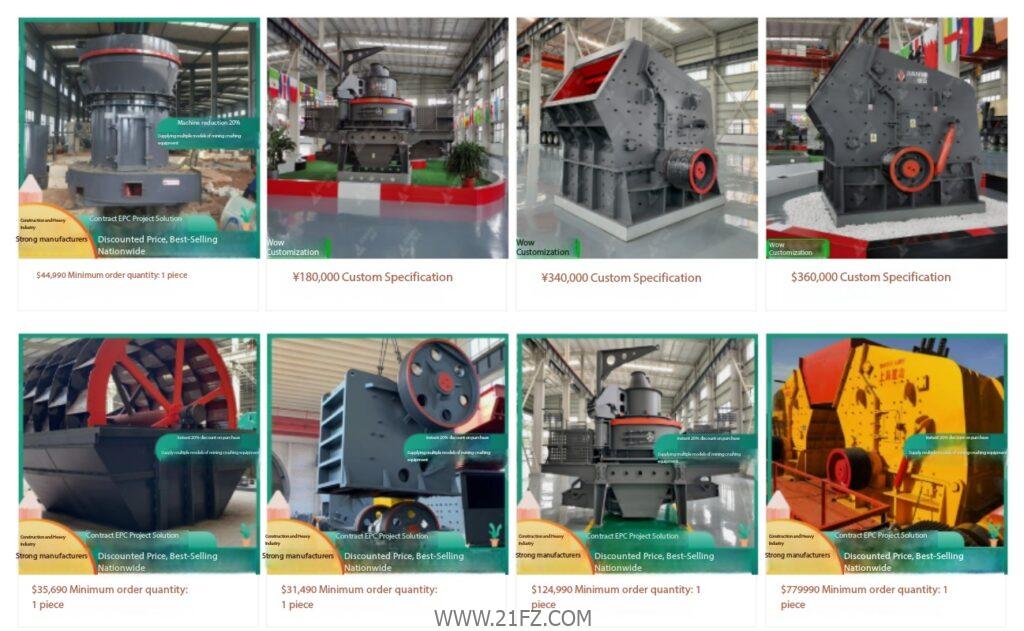Crushing equipment (impact crusher, jaw crusher, hammer crusher, box crusher, compound crusher); complete sets of sand and gravel production line equipment (vibrating feeder, crusher, sand making machine, fine crusher, sand washing machine, belt conveyor, vibrating screen); complete sets of mineral processing equipment (ball mill, dryer, rotary kiln, magnetic separator, flotation machine, classifier); auxiliary equipment (feeder, elevator, belt conveyor), etc., for cement building materials, metallurgy, coking, refractory materials, carbon, cement, chemical smelting, and other complete sets of machinery and equipment have been exported overseas and sold throughout China.